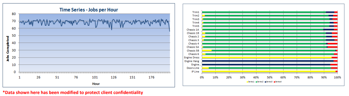 Simulated various downtime and uptime conditions, identifying how equipment availability and layout changes could improve overall performance.